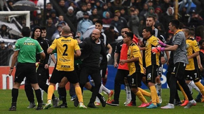 Faltando aproximadamente cinco minutos para el cierre del partido, en el tiempo agregado, entran hinchas a la cancha y empiezan a agredir a los jugadores del equipo rival. Invadieron y no dejaron terminar el encuentro deportivo. Después nos enteraríamos que no todos eran hinchas sino que en ese montón había uno de los jugadores que componen el plantel del Blanquinegro. Todos repudiamos la acción.
