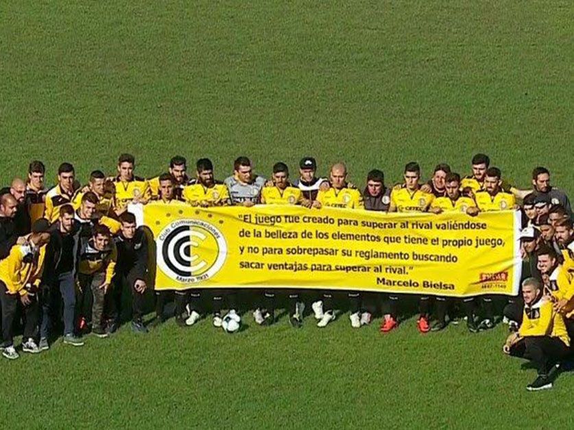 Por su parte, el cartero salió a la cancha con una motivación extra que era conseguir la hazaña. Vestidos con la clásica camiseta amarilla y una cita de Bielsa “El juego fue creado para superar al rival valiéndose de la belleza de los elementos que tiene el propio juego, y no para sobrepasar su reglamento buscando sacar ventajas para superar al rival”. Esta frase tendría un valor más notorio si sólo el buen juego bastara para ganar, sin ninguna acción que condicione al rival; y si el loco hubiese ganado algo digno después de dirigir a Newell’s ¿Quién no puteó alguna vez en la cancha para que el rival se sienta dolido y desafiado? O acaso ¿No recordamos cuando Daniel Osvaldo le mostró el pastito a Desábato para hacerlo calentar? El juego también es eso, señores.