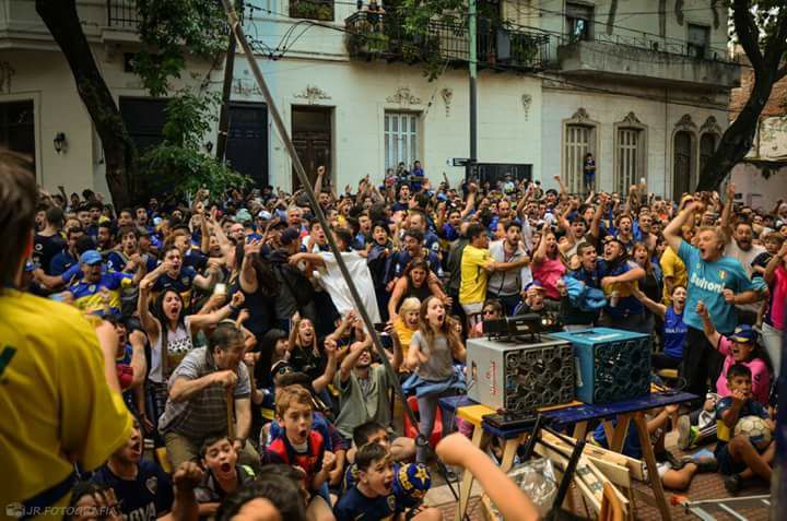 La Boca vivió un domingo atípico. Acostumbrados a reunirse en los bares para ver el partido, vecinos y allegados salieron a la calle desde temprano buscando una ubicación. Pero éste no fue un domingo más. El Fútbol Para Todos se terminó y la gente del barrio no sólo no tenía la opción de verlo en casa, sino que también la condición de visitante de Boca los hacía querer juntarse con los de la misma bandera para alentar en la distancia.