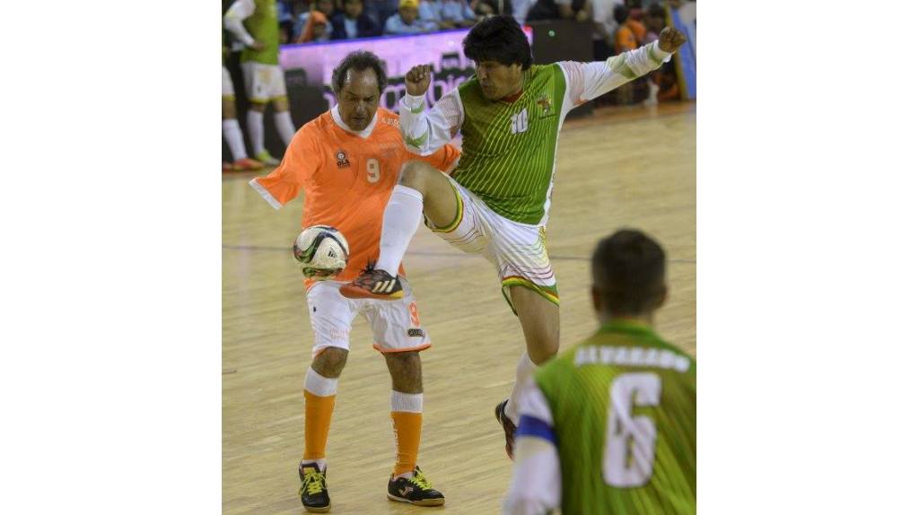 El fútbol también le sirvió a Morales para unir lazos con dirigentes y mandatarios de otros países que están en las antípodas de su pensamiento. Ha hecho picaditos con Macri, con Piñera, con Juan Manuel Santos. También hizo un papi fútbol con Scioli en plena campaña presidencial en 2015 en Villa La Ñata.