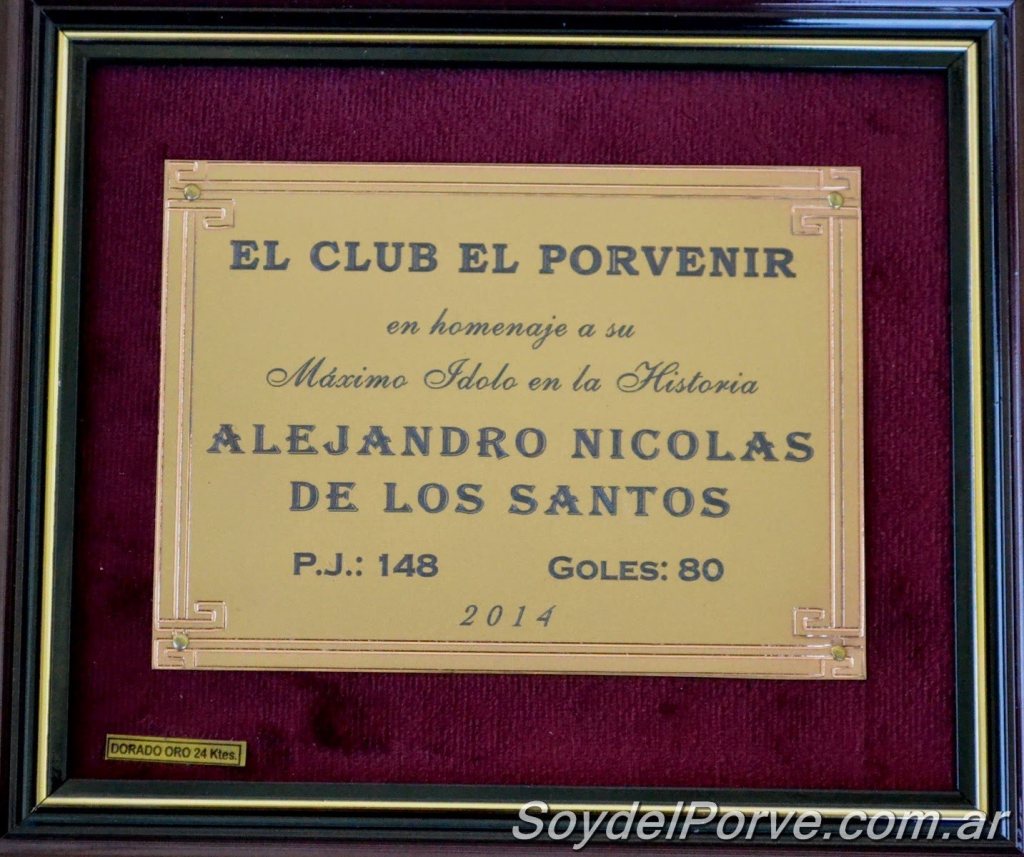 Tuvo 7 hijos e hijas con su esposa la española Margarita Calvo y falleció a los 79 años el 16 de febrero de 1982. 32 años después recién tuvo su merecido reconocimiento. En Gerli jugaba su Porve querido contra Sportivo Barracas, en cuya cancha había ganado la Copa América del 25, por el torneo de Primera D. En la previa del partido invitaron a familiares suyos para realizarle un homenaje. A partir de ese momento el microestadio techado del club llevaría su nombre. La familia del Negro se llevó una plaqueta conmemorativa que decía “el club El Porvenir en homenaje a su máximo ídolo en la historia Alejandro Nicolás De Los Santos”.