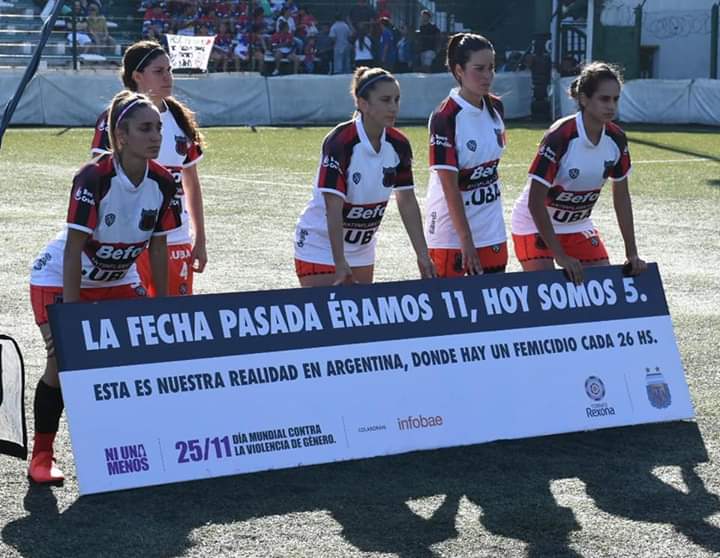 Las jugadoras salieron al campo y posaron con un banner por el “Día Internacional de la Eliminación de la Violencia contra la Mujer”. Así como lo leen, el banner diseñado por AFA, no causó ningún efecto en la parcialidad local.