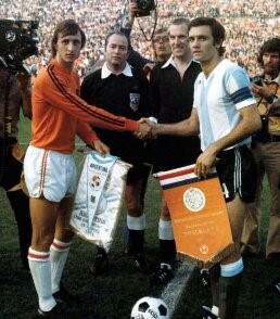 Pero surge un problema, la estrella máxima del seleccionado holandés, había firmado un suculento contrato para usar botines: Puma. Otro conflicto de las marcas, que el astro del Barcelona solucionó con facilidad: le dio mayor importancia a su contrato personal y usó los botines del felino, a su camiseta 14 le quito una tira, al igual que al pantalón y medias. La foto junto a Roberto Perfumo previo al encuentro que disputaron con Argentina en dicho certamen lo deja a la vista.