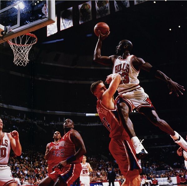 No era la primera vez, sin embargo, que Michael desafiaba las leyes de la física. De hecho, su leyenda empezó dos años antes, en el “Concurso de Volcadas” de 1987 en Seattle. Allí, en una disputa que terminaría ganando, Jordan dio un salto que lo mantuvo en el aire durante 0,92 segundos, cuando el “hang time” (como se llama a la fuerza que permite mantenerse en el aire despegando los pies del suelo) de una persona normal lo hace suspenderse por 0,53. Es decir, Michael duplicaba un salto común y corriente. La famosa jugada final de la película Space Jam (1996) fue una parodia ficcional que rememoraba tal momento.