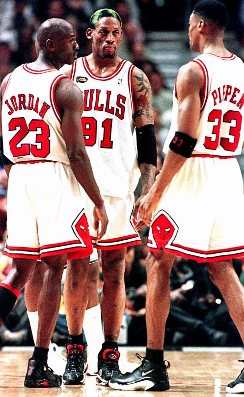 Para la nueva temporada los Bulls de Jackson, Jordan y Pippen encontraron posiblemente al mejor reboteador de todos los tiempos: Dennis Rodman. Ex “Bad Boy”, el ala-pivot trajo el músculo, el esfuerzo y el ímpetu que implicaba la salida de Horace Grant. Excéntrico como pocos, fue capaz de tener un programa de televisión, patear en la ingle a un camarógrafo, filmar una película con Jean Claude Van Damme, teñirse el pelo de varios colores diferentes todos a la vez, dejar una concentración en plena final de NBA para ir 48 horas a Las Vegas, volver, y ganar un anillo. Eso sí, cuando jugaba, podía bajar entre 25 y 30 rebotes en un partido. El “gusano”, pieza clave de indescifrable talento, definió su relación con el equipo de Jackson: «Michael era el anotador, Scottie era Robin y yo era el tipo que recogía la basura. Nos complementábamos muy bien en la cancha». Incluso alguna vez fue más explícito: “Jordan era Dios, Pippen era Jesús y yo… el diablo”.
