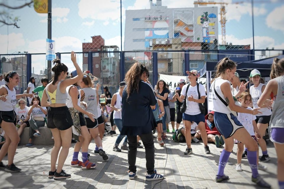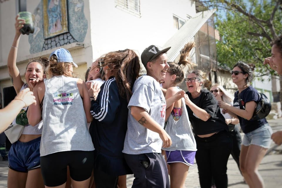 En la cancha Güemes había unas cien pibas. La Mónica arbitraba y se reía, me hacía señas. Se reía. Los dientes de la Mónica son como las ventanitas de la villa. Hay gente que sale por las ventanitas y también se ríe cuando se ríe la Mónica. Juega el Norita Cortiñas, La Nuestra Fútbol Club, Las Aliadas de la 31, Todo Fulbito es Político y otras casacas a dos canchas. Me siento entre medio de ambos rectángulos. Hay jugadas que terminan bien cerca, casi arriba mío, contra la raya. La pelota se deforma entre las piernas, sale liberada, es un gol tras otro. Una en el palo. La arquera que se la juega a los pies de la más rápida. Es un eco de barridas y suspiros. Los goles son paréntesis efímeros. El premio son los chori, la birra, el ferné, la cumbia y la Karen Pastrana que vino a tirar su lírica. Las pibas bailan. Las niñas también. La cumbia hermana. La cumbia, hermana.