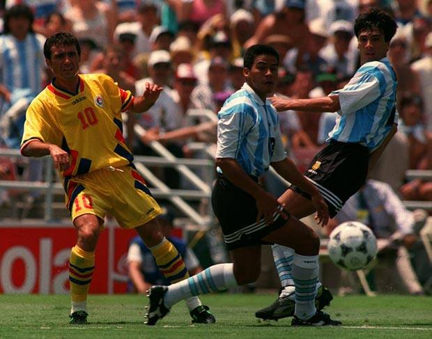 El hecho de haber clasificados como terceros nos mandó a jugar con Rumania que había ganado su grupo. Los primeros 20 minutos del partido Argentina ya perdía 2 a 0 por dos goles de Dumitrescu. El equipo ya no tenía a su líder-emblema en la cancha que ahora estaba en el palco de prensa comentado el partido para Canal 13 con el que tenía contrato de exclusividad. La transmisión, en la que también estaba Carlos Bilardo, es entre bizarra y emotiva. Diego en el segundo gol describe errores de sus propios compañeros. “A Hagi no lo podes dejas enganchar para adentro porque mete pelotas de gol como la que metió. Lo lamentable es que algunos entraban, otros salían y lo dejaron al más peligroso solo”, comentó con las gafas oscuras puestas en modo Mala Fama. Argentina ya había mostrado con Bulgaria tener la línea defensiva muy adelantada lo que dificultaba el retroceso tras pérdida.
