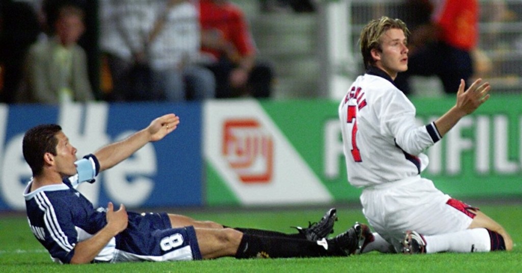 También fue 2-2 el jugado en Saint Etienne. Todos los goles fueron el primer tiempo. Inglaterra tuvo a un Michael Owen de 18 años que fue un demonio imparable. Recibió con el taco un pase de Beckham, corrió esquivando las patadas de Chamot, en velocidad pasó a Ayala y cruzó un remate imposible para Lechuga Roa. El empate argentino también fue un golazo. Todo el equipo inglés esperaba el remate al arco de Verón en un tiro libre al borde del área. Pero la soltó rápido para Zanetti que segundo antes estaba infiltrado en la barrera y metió un zurdazo hermoso. Verón y Simeone fueron a festejar el gol señalando y abrazando a Passarella por la jugada preparada.