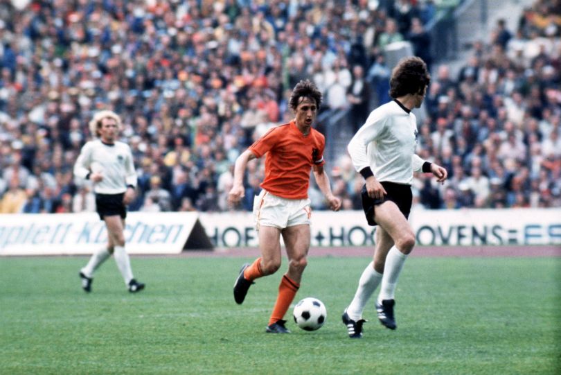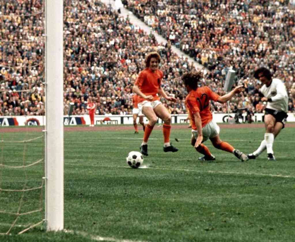 La final de la Copa del Mundo Alemania 74 enfrentaba a la mejor selección de la época, Holanda, contra el equipo local, Alemania Federal, la capitalista. El equipo favorito era Holanda, comandada por Rinus Mitchels desde el banco y por las gambetas endiabladas del símbolo de la era post Pelé: Johan Cruyff. La naranja mecánica había impuesto una renovación del fútbol a través de la tenencia de la pelota, la presión alta y la movilidad de sus futbolistas dónde todos los jugadores podían aparecer en cualquier parte de la cancha.
