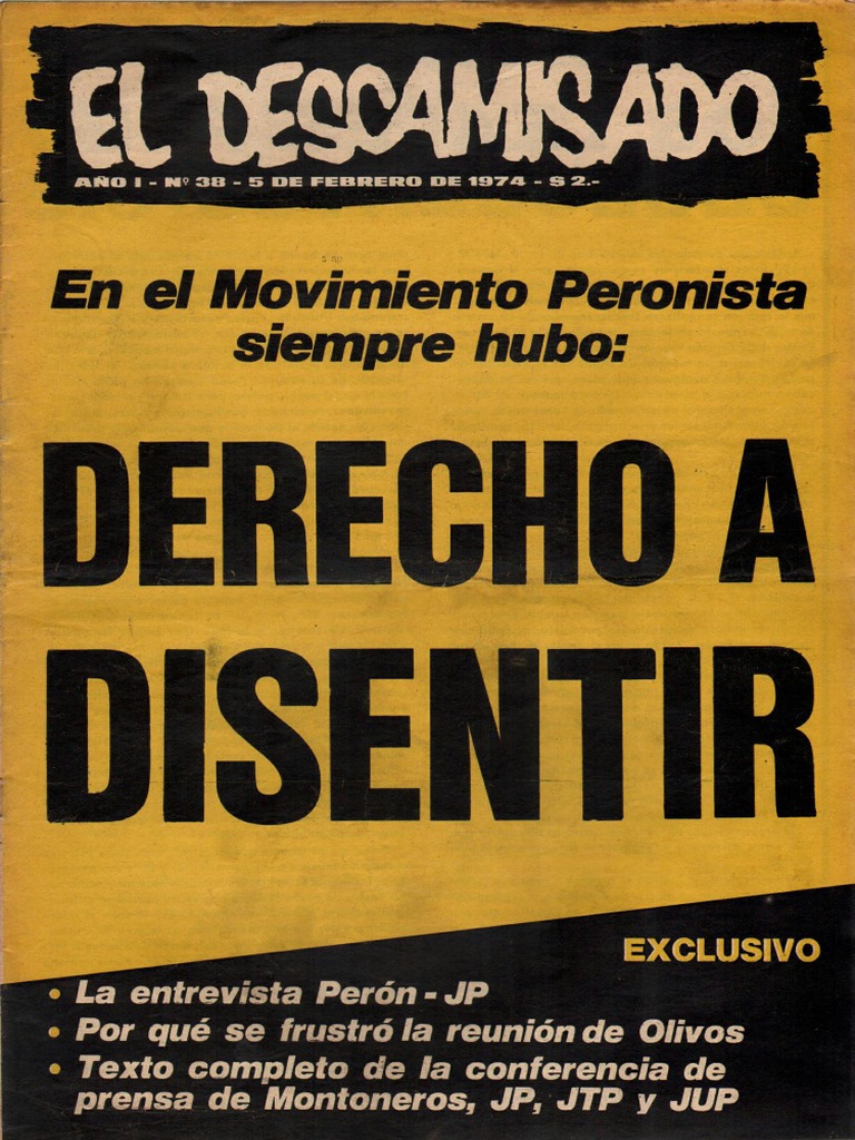De pibe leía “El descamisado”. La revista de Montoneros, dirigida por Dardo Cabo y Ricardo Grassi, representaba el ala más revolucionaria del peronismo en la década del 70. Llegó a tener tiradas de 140.000 ejemplares. En la misma publicaba Héctor Germán Oesterheld, escritor desaparecido dos años después junto a sus cuatro hijas.