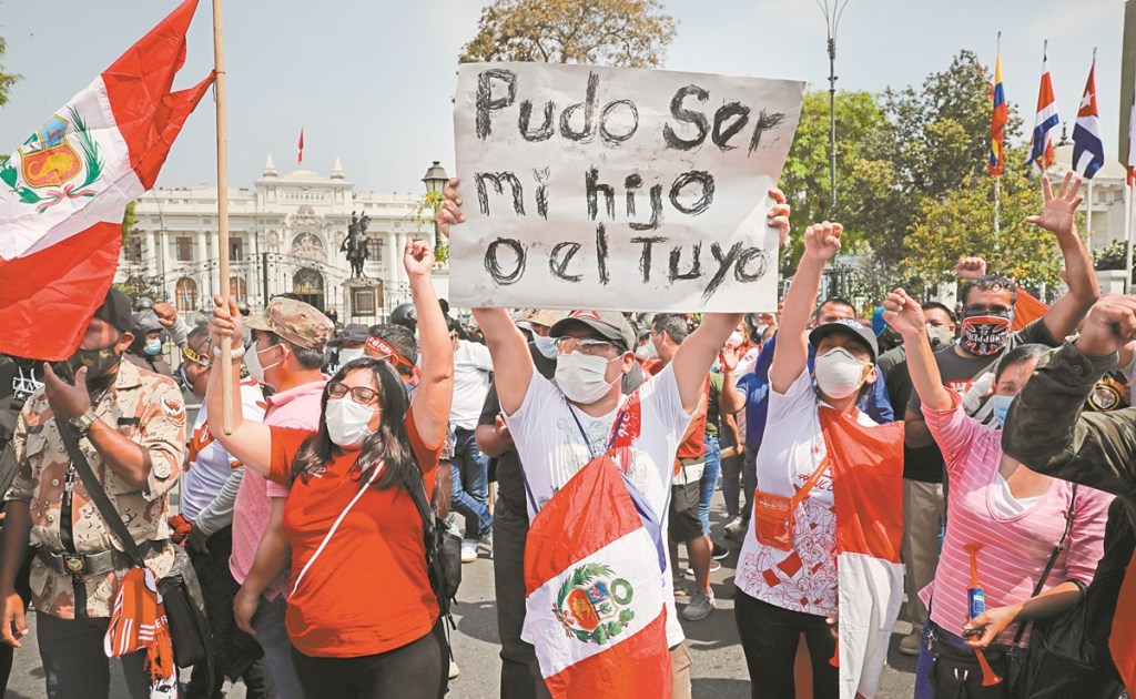 El sábado por la noche las protestas alcanzaron su punto más alto. Así también la represión policial. “Mamá, salí a defender la Patria, si no regreso me fui con ella”, se podía leer en un cartel entre la nube de gases lacrimógenos. A pocos metros, Inti Sotelo, de 24 años y Jack Pintado, de 22, fueron asesinados. Sotelo recibió un balazo en el pecho. Pintado murió después de recibir múltiples impactos de perdigones en la cara, el tórax y el cuello. Además un centenar personas resultaron heridas. Al momento de terminar esta nota cuarenta y cuatro manifestantes se encontraban desaparecidos y desaparecidas. La Coordinación Nacional de Derechos Humanos de Perú reclama el acceso a los cuarteles policiales.