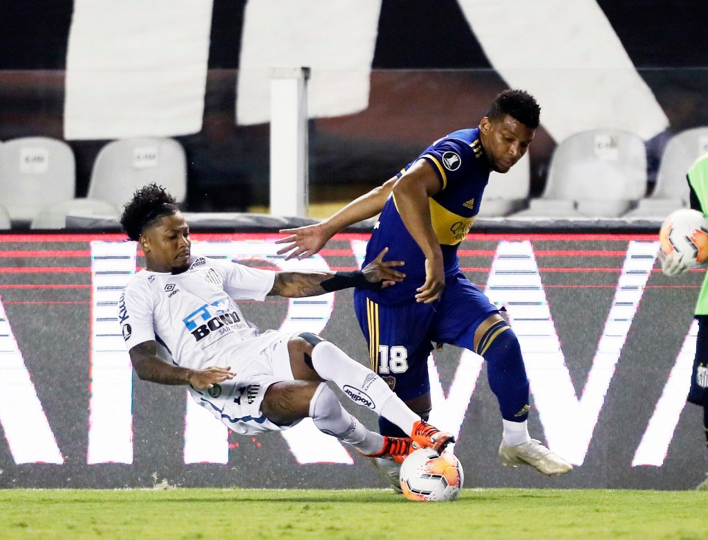 Si nos detenemos en los rendimientos individuales, vamos a encontrar un segundo motivo de la victoria de Santos. A excepción de los centrales, Lucas Veríssimo y Luan Peres en Santos contra Lisandro López e Izquierdoz en Boca, todos los jugadores brasileños fueron superiores. Se le puede caer a la dupla xeneize por el primer gol, pero veamos la jugada.