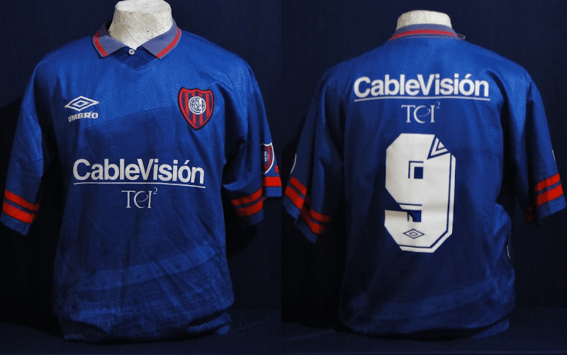 Pero en 1996, Umbro le entregó al club una camiseta alternativa color azul Francia, que levemente parecía celeste. El detalle que hace preciosa a esa prenda es la marca de agua del Viejo Gasómetro en la parte baja del frente y en la espalda. Hacía solo tres años que se había estrenado el nuevo estadio y la imagen se podía traducir en un “no me olviden”.