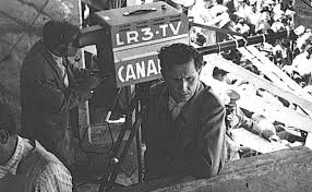 La primera transmisión televisiva en la Argentina fue el 17 de octubre de 1951 desde Plaza de Mayo donde Eva Perón daba un discurso por el Día de la Lealtad Peronista. Casi un mes después el 18 de noviembre se jugó el primer partido emitido en vivo por TV por Canal 7. Fue un San Lorenzo-River en El Gasómetro de Avenida La Plata. Este encuentro fue auspiciado por el Ministerio de Industria y Comercio del gobierno peronista y por YPF, cuya publicidad se veía de fondo.