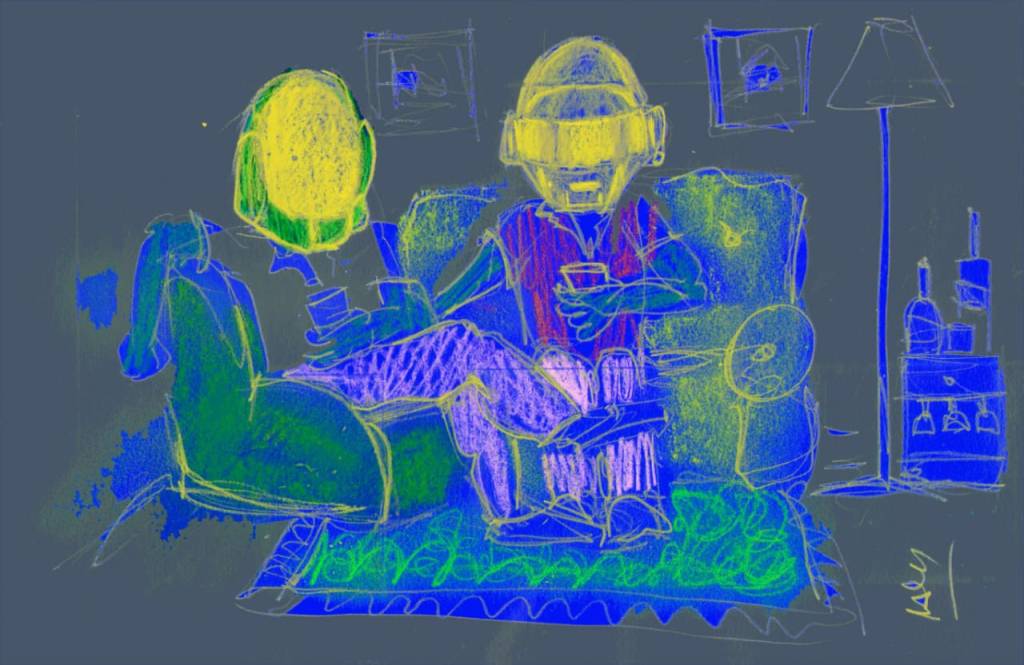 Al otro día fui a cenar a la casa del Santo. Me esperaba con un risotto de pollo a los cuatro quesos y un par de botellas de vino Rutini cosecha 2013 que había conseguido al costo. Comimos con el partido de Ñuls contra los sanjuaninos de fondo, hablando de minas, películas y del arreglo de la ventanilla de la Kangoo, que no podía hacer con cualquiera y seguía pendiente. Cuando se acabaron los vinos y la comida, pasamos al living con una botella de whisky. Puso Random Access Memories de Daft Punk, la banda sonora de su vida, y se despatarró en el sofá porque le dolía mucho la cintura.