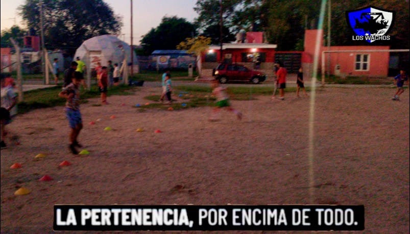 “En 2017 un pibe de Villa Inés, que es un club rival al nuestro, larga con una escuelita con los pibes que teníamos antes. Se acercó y quiso retomar con la escuelita. Como es de Villa Inés quería ponerle Los Revoltosos de Villa Inés. Y los chicos mismos le dijeron, ‘no Pancho, no nos vamos a llamar de Villa Inés porque nosotros somos los Wachos de Campo de la Ribera”, recuerda Carlos.
