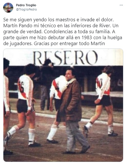Martín Esteban Pando se retiró jugando para Lanús al finalizar el año 1967, tras defender la Granate en 77 oportunidades y marcar cinco goles. Entre 1973 y 1991 regresó a River, donde ejerció su rol de docente en diferentes categorías juveniles. Entre otros tuvo a un joven Marcelo Gallardo que en 2019 tras verlo después de muchos años declaró: “Siempre recuerdo a Martín Pando. No lo tuve mucho tiempo, pero fue un buen rato, suficiente como para hoy, que soy grande, entender lo que es un formador, lo que es ser un maestro”.
