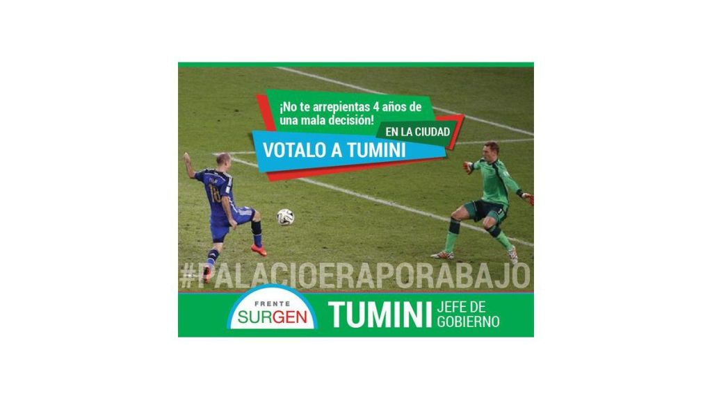 En las elecciones de 2015 el no gol de Palacio fue la imagen del afiche de campaña del precandidato a jefe de gobierno de la ciudad de Buenos Aires Humberto Tumini de Libres del Sur. Su lema era: “¡No te arrepientas 4 años de una mala decisión! En la Ciudad votalo a Tumini”.