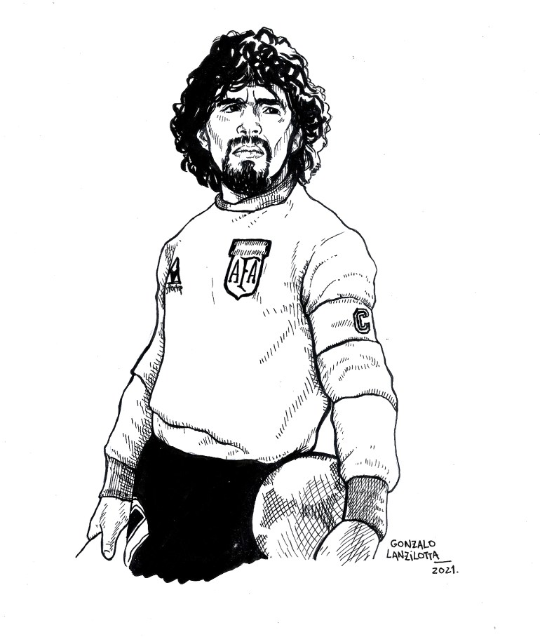 Teníamos un montón de material escrito sobre él y otro que nos dijimos “no, vamos a escribir ahora, en fresco, sobre lo que fue Diego para nosotros” y más o menos va por ahí el libro. No es contando la vida de Maradona de la que ya todo sabemos, la que lo vimos desde que nació hasta que se murió. A Diego lo veíamos todos los días y sabíamos lo que comía, la ropa que usaba para dormir… Entonces es un enfoque diferente, son 24 crónicas más dos epílogos que fuimos craneando entre todos nosotros. En total escriben Juan Stanisci, Lucas Jiménez y Santiago Núñez, que son las tres cabezas del proyecto. Se suma también con unos hermosos textos Lucho Bauzá, que es el creador de una serie de textos que fue sacando llamado “El Cazador”, una historia que salía semanalmente en la página y que terminó hace poquito. Recomiendo que se metan a leerla porque es una locura. Y también tenemos los aportes uruguayos de Sebastián Chittadini que se suma desde el Uruguay aportando un par de textos y también alguna cosita que he escrito yo.