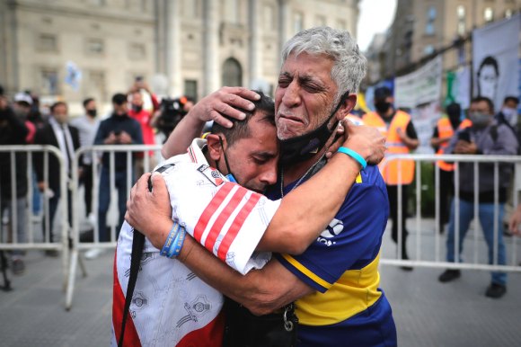 -Lo otro extraño que sucedió. En Boca cerca de la vía en Brandsen donde está la entrada a las plateas y la sede vas a poder ver que entre muchos amuletos que fueron dejando entre camisetas de Boca, un habano Cohiba, posters, hay una gorra de Racing. Una de las fotos que más fuerte se viralizó es la de un hincha de River llorando abrazado a uno de Boca y también otra de una madre con una hija con la camiseta de Central dejando algo en el estadio de Newell´s ¿Eso solamente lo podía generar Diego no?