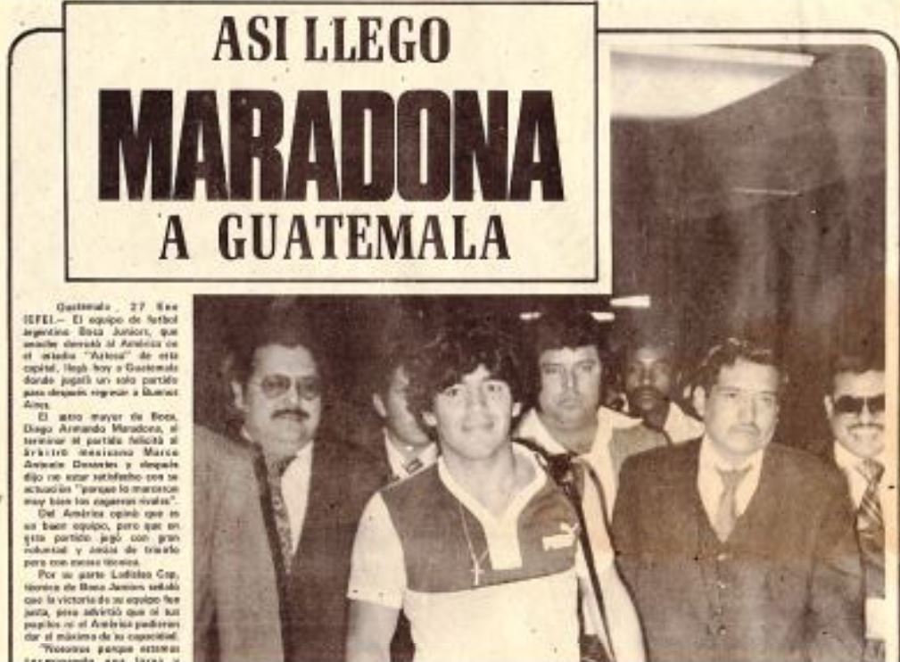 Hace 40 años Maradona jugaba por primera vez en Guatemala, fue un amistoso Boca-Comunicaciones. Cuatro años después, un niño guatemalteco entendería de la lucha de los pueblos latinoamericanos al verlo dejar ingleses en el camino, en pleno estadio Azteca. Escribe Julio Enrique Morales Can.