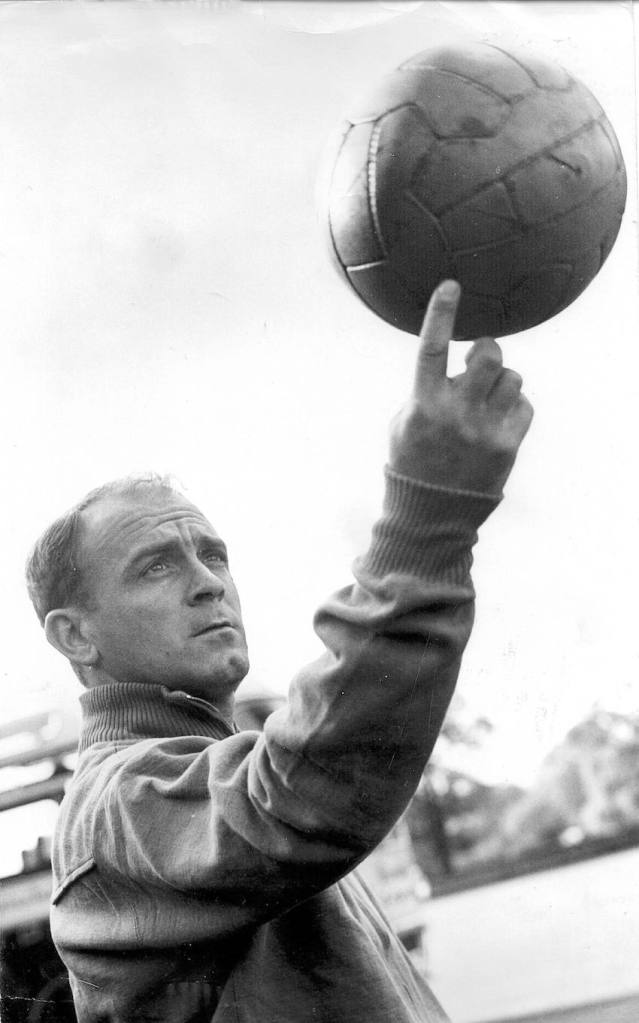 Alfredo Di Stefano – Spanish Football Team – spinning the ball on his finger at team practice in preparation to play England at Wembley 25th October 1960