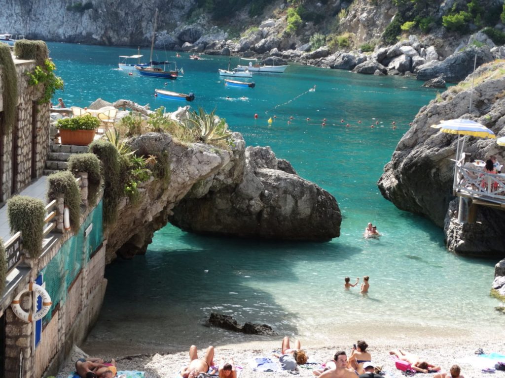 Salté del vaporetto y empecé a trepar por las empinadas callejuelas de la isla (dejo para la próxima algunos interesantes descubrimientos que hice en el trayecto), hasta llegar horas después a una altura en las colinas que me permitía ver el Tirreno y, tal vez, a lo lejos, la silueta de la península de Sorrentina y, hacia abajo, una pequeñísima playa.