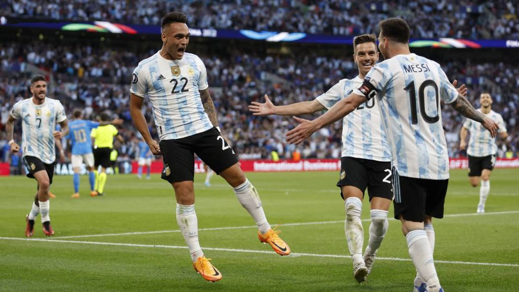 El 2-0 lo empezó Dibu Martínez que sacó del arco con un pase pinchado para una jugada bestial de Lautaro: aguante de la marca, giro, aceleración y asistencia en cortada a Di María para la especialidad de la casa: picarla por arriba del arquero. Están de la mente estos chicos. Al minuto y medio de partido Fideo quiso meter un gol de mitad de cancha. Messi regaló un concierto de meneos cortos con la pelota en los pies. Los Viejitos Piola están rejuvenecidos después del título de Copa América. Lo que juegan, lo que se buscan, lo que se divierten. Premio por no salir corriendo.
