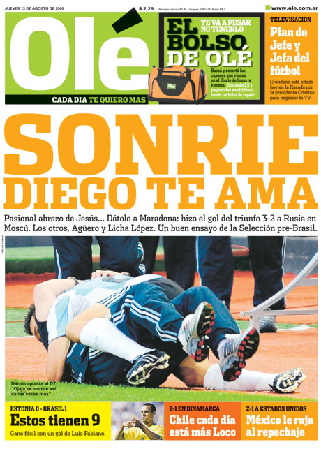 Agarró el teléfono con desconfianza como quien espera una cargada y solo atinó a decir un “hola”. Del otro lado con voz seria de oficinista escuchó un “hola, habla Diego Maradona. Te quiero convocar para el partido contra Rusia”. Cosa que no solo ocurrió sino que lo hizo debutar con la albiceleste. A pocos minutos de ingresar, el nacido en Spegazzini picó por la izquierda y con un zurdazo puso el 3-1 del amistoso. Dátolo salió corriendo a abrazar a su entrenador, la emoción llevaba tanta fuerza que lo tiró al piso, la emoción era tanta que aún en el suelo siguieron el festejo y el abrazo.