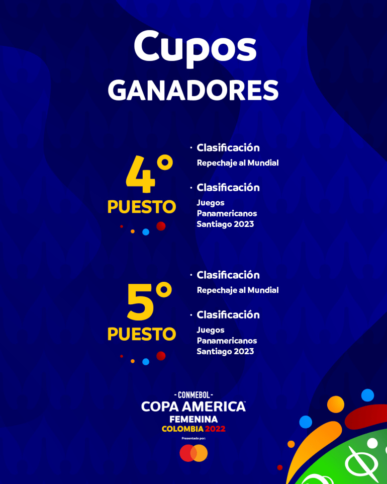 Además de las campeonas, las segundas y terceras clasificarán al mundial de Australia-Nueva Zelanda 2023, mientras que las cuartas y quintas jugarán el repechaje. A los Juegos Olímpicos París 2024 irán las campeonas y subcampeonas. Y a los Juegos Panamericanos Chile 2023 las terceras, cuartas y quintas (Chile ya tiene su lugar asegurado por ser el anfitrión).