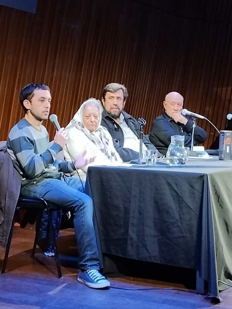 En el escenario Julián habló del negacionismo en tiempo presente. Aportó cinco puntos que muestran que la lucha por la memoria es una batalla de todos los días. El 7 de diciembre Victoria Villarruel, diputada electa por “La libertad avanza”, juró al asumir su banca por “las víctimas del terrorismo”. Ceferino Reato vendió miles de copias de “Masacre en el comedor”, libro donde vuelve a exponer la teoría de los dos demonios. En la semana de la memoria una docente en Entre Ríos difundió entre sus alumnos y alumnas, un video de Tik Tok donde se hacía referencia a las Madres de Plaza de Mayo como “madres de terroristas”. El 29 de junio pasado la Cámara de Casación Penal 2 equiparó la estructura de Montoneros con la de las fuerzas represivas. El 7 de julio al ex marino genocida Juan Carlos Rolón le fue otorgada la libertad condicional, al considerarse que cumplió su pena (tiene cadena perpetua).