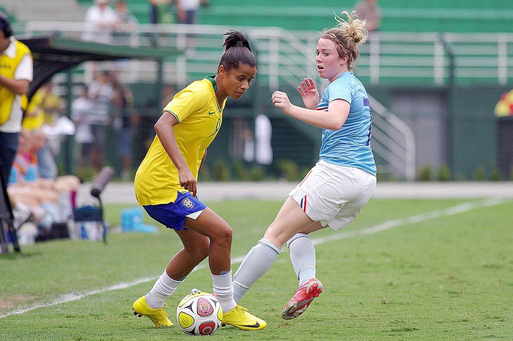 La mediocampista brasileña nació en 1981, en pleno auge del fútbol femenino. En Brasil, entre 1941 y 1979 el fútbol fue un juego prohibido para las mujeres. El decreto que lo establecía buscaba cuidar sus capacidades de procreación. La intención era “resguardar” los cuerpos “frágiles” y “delicados” de las mujeres para concebir “niños sanos”.