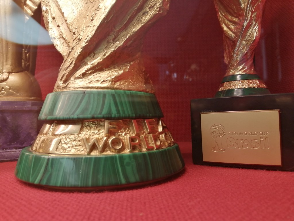 –Sí, tratamos de tenerla lo menos posible… y no sólo pedimos que se aumente la prima de la aseguración, también tenemos guardias de seguridad que permanecen acá mientras la conservamos en nuestras instalaciones. La última vez que vi la copa fue en Zurich un mes atrás. La que tenemos acá en el showroom es la única réplica autorizada por la FIFA, que tiene el mismo tamaño de la copa oficial. Las que se le entregan a cada federación son de un tamaño un poco menor y se producen con una aleación de cobre y zinc, pero van bañadas en oro.