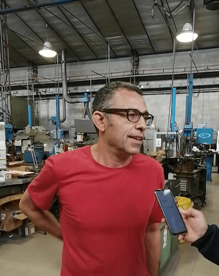 Alguien, en medio del murmullo de máquinas e instrumentos varios, llama a Salvatore, que pide un momento. Convoca a Pietro (49 años), que es el trabajador más antiguo de la Bertoni. “No es de hablar tanto eh”, nos advierte y sonríe. Se presenta con un delantal azul marino y es también milanista, aunque aclara que no es fanático del calcio como se podría presumir.