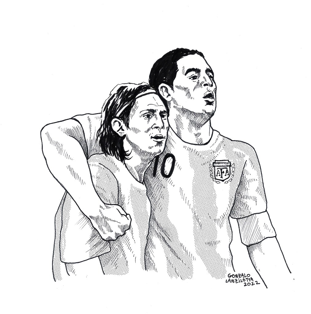 Gonzalo Lanzilotta se dedica a las ilustraciones, nos hizo las hermosas y elogiadas tapas de nuestros libros y revistas. Además algunas notas de la página están adornadas con su magia, como esta nota del Maradona entrenador de la Selección Argentina en Sudáfrica 2010 o esta otra de Carlos Salvador Bilardo.