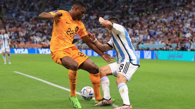 Avancemos un año y medio. El lateral sale llovido y cae en los pies de Alexis Mac Allister. Por primera vez en el partido tiene espacio y tiempo para pensar. No hay ningún holandés presionando. Abre para Acuña que ya está adelantado, en tres cuartos de cancha. Al Huevo sí lo marcan. Da un giro aguantando la pelota y arranca.