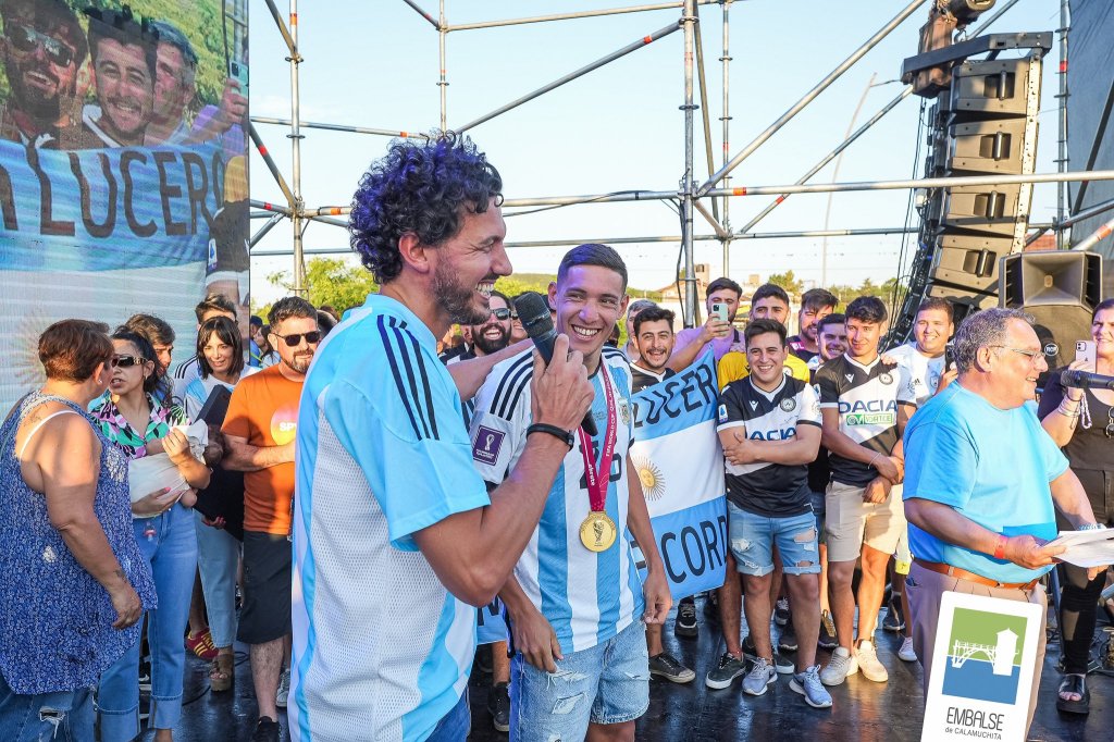 Entre los reconocimientos varios que recibió, destacó el de “Ciudadano ilustre y Embajador del deporte de Embalse” por parte del Consejo Deliberante local como así también otras plaquetas en nombre del municipio y el pueblo. Embargado por la emoción, el lateral se quebró a poco de subir al escenario montado para la ocasión. “Es difícil hablar con tanta gente que se acercó. Estoy muy feliz por nosotros, mis compañeros y cada persona del staff que nos acompañó en este tiempo. Estamos disfrutando, esto no se vive nunca. Somos campeones del mundo”, y generó la primera gran ovación de la jornada.