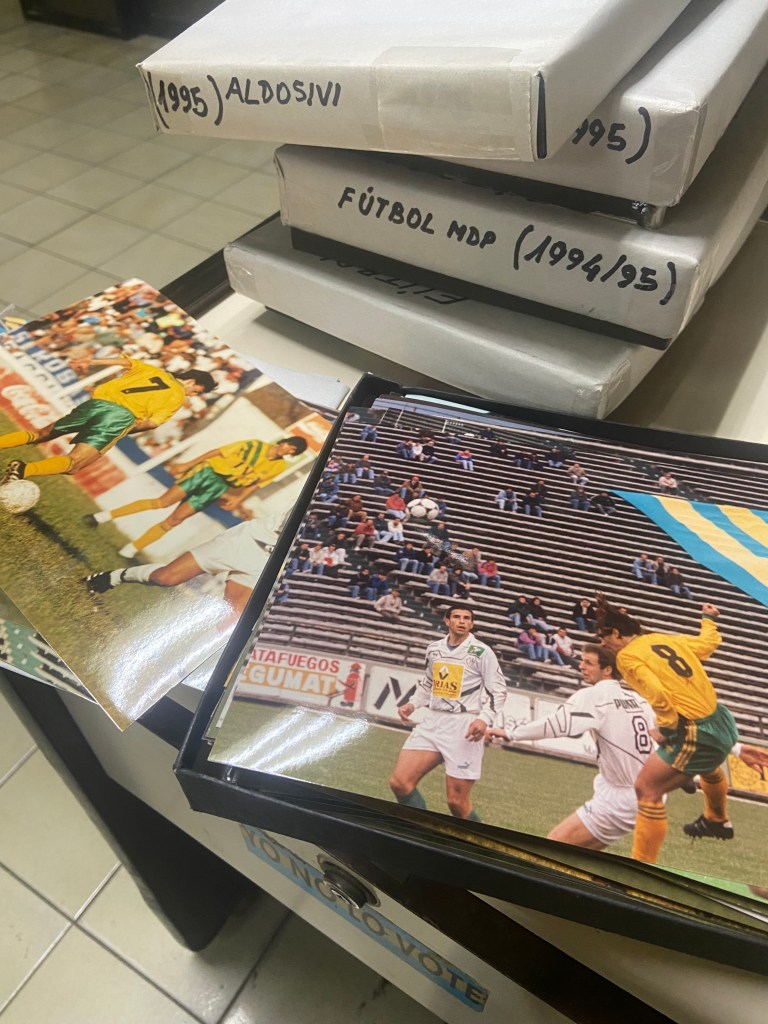 Para poder contar la historia se dirigieron al archivo del diario La Capital de Mar del Plata. “Son cajas y cajas de fotos, obviamente mucho se perdió, hay muchas en blanco y negro que no tiene el mismo impacto en la grafica y faltan un montón de cosas. Pero igual es increíble”, describe Nano. Las imágenes dieron más volumen para contar la historia del clásico en el punto más álgido antes de la prohibición.