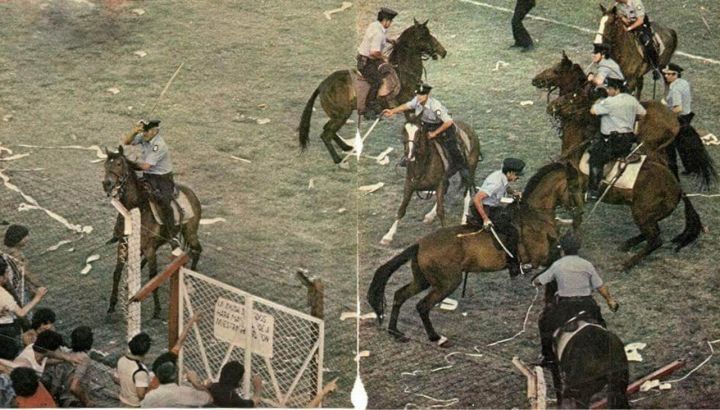 La escena terminó con la policía montada a caballos pegando “como los gauchos de Güemes”, describió el relator televisivo. Era el último año de la dictadura y el periodista quiso dejar en claro que la policía había sido culpable de los hechos por no prevenir a tiempo. Hasta la voz del estadio les decía que no les tiren gases a la gente. La ligaron jugadores, barras y periodistas. Mientras Muchinga era el nuevo ídolo de los quemados, se retiraba para siempre del periodismo deportivo Nelson Castro, tras haber sufrido la represión en el campo de juego.